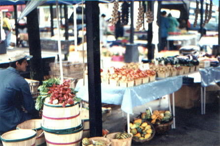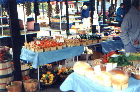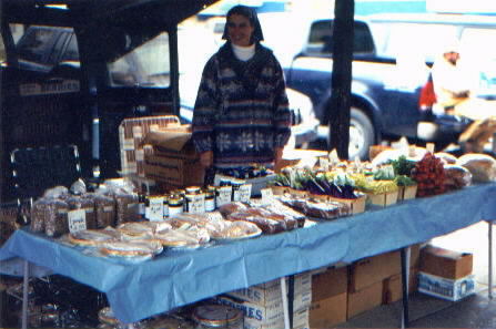 Here are some photos of our booth at the local farmer's market, on the Square in Stevens Point, Wisconsin, taken in the fall of 2000.  This page takes about 2 minutes to download.