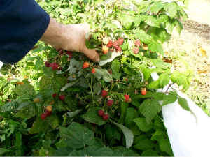 Raspberries: For some reason, the berries ripened quite late this year.  We did not get any ripe berries until September 26th.  On October 1st  the weather turned cold and our test plot outside of the tunnels froze, destroying any hope of a berry crop.  Being in the zone 4 area , that is a common problem with fall berries.